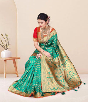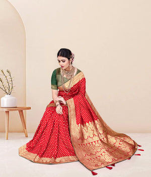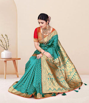 SOMVATI Banarasi Silk Saree – Fusion of Tradition and Modern Elegance with Intricate Jacquard Weaving