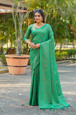 Bringing the best of the traditions on a saree, this piece is composed of poise and elegance. With carefully selected designs and rich border, no wardrobe is complete without this saree.