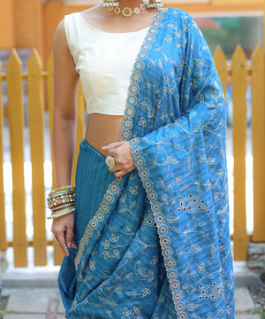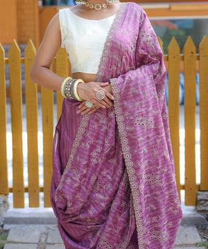 An Embroidery Soft silk saree is a beautiful and elegant garment that combines the delicate charm of chiffon fabric with intricate Jacquard Border Lace work. Here's a detailed description
