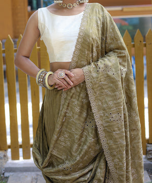 SOMVATI Bollywood Embroidery Pure Soft Silk Saree – Exquisite Handwork with Floral Elegance and Cutwork Border