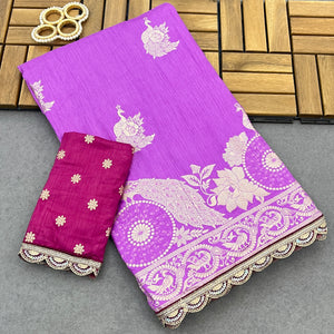 An Embroidery Dola Silk Border Lace saree is a beautiful and elegant garment that combines the delicate charm of chiffon fabric with intricate embroidery Border Lace work. Here's a detailed description