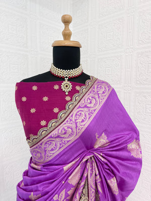 Blouse: The Dola Silk saree is typically paired with a matching or contrasting blouse, which can also feature embellishments to complement the saree's design.