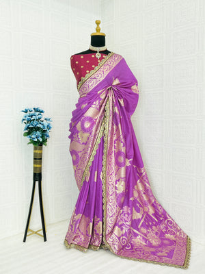 SOMVATI Dola Silk Saree – Regal Elegance with Intricate Embroidery Lace