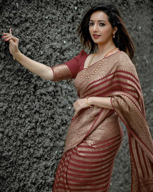 SOMVATI Captivating Banarasi Kanjivaram Jacquard Woven Self-Design Saree: Redefining Ethnic Grandeur