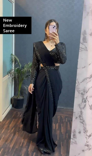 An embroidery chiffon saree is a beautiful and elegant garment that combines the delicate charm of chiffon fabric with intricate embroidery work. Here's a detailed description