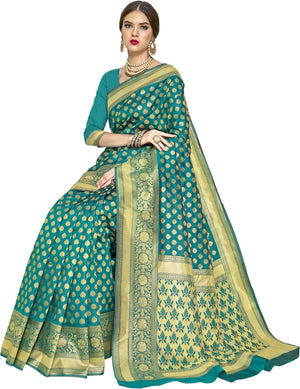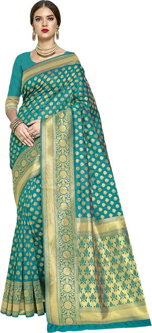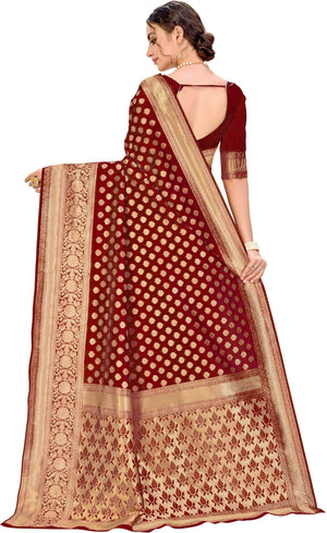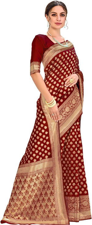 SOMVATI Exquisite Banarasi Kanjivaram Jacquard Saree: Self-Designed Weave for a Touch of Timeless Elegance