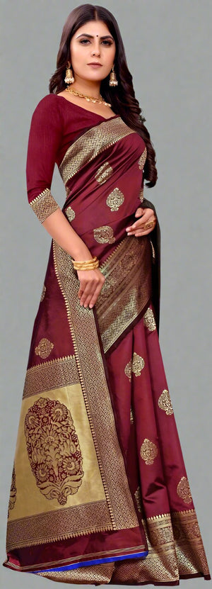 SOMVATI Glamorous Banarasi Kanjivaram Jacquard Woven Self-Design Saree: Luxe Detailing for the Fashion Icon
