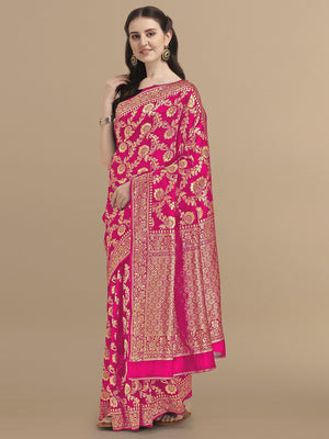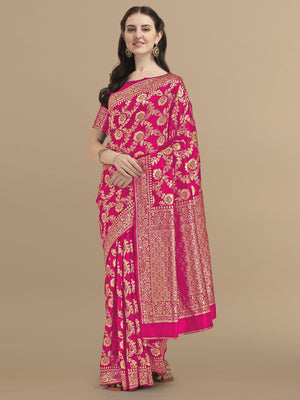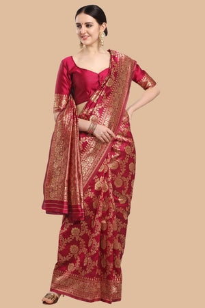 Bringing the best of the traditions on a saree, this piece is composed of poise and elegance. With carefully selected designs and rich border, no wardrobe is complete without this saree.