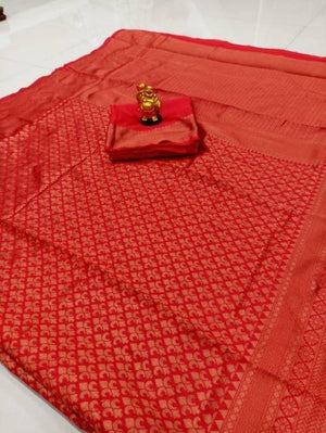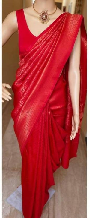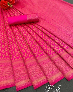 Bringing the best of the traditions on a saree, this piece is composed of poise and elegance. With carefully selected designs and rich border, no wardrobe is complete without this saree.