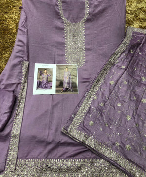 SOMVATI Premium Heavy Unstitched Material Salwar Suit – Embroidered Elegance with Sequins & Stone Work