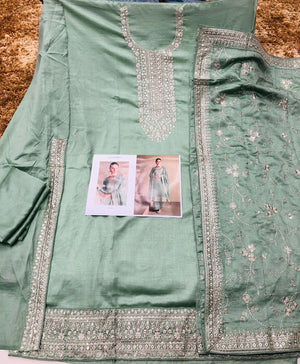 - DUPATTA: Heavy Vichitra with sequins, embroidery work, and stone embellishments.