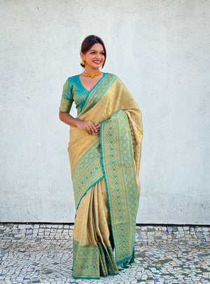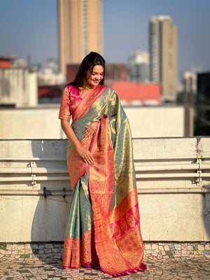 SOMVATI Pure Soft Tissue Zari Woven Saree – Timeless Elegance