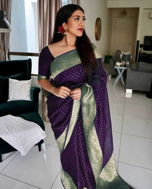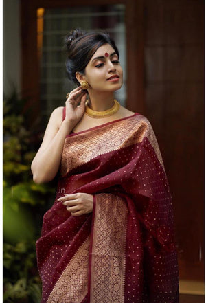 SOMVATI Radiant Banarasi Kanjivaram Jacquard Woven Saree: Exquisite Self-Design for Modern Elegance