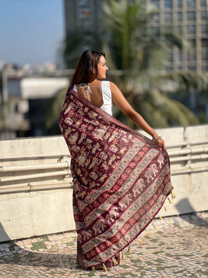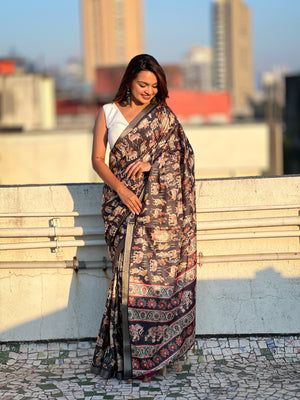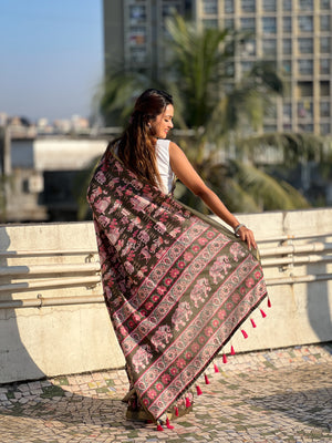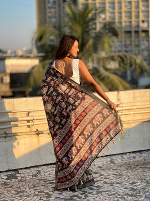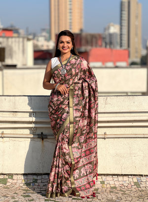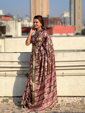 SOMVATI Tussar Silk Printed Saree with Zari Border – A Blend of Grace and Tradition